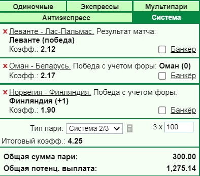 Напоминаем, что ставка типа "Система" принесёт прибыль даже в случае прохода двух позиций из трёх, а ставки вида "Экспресс" можно сделать в нашем виртуальном букмекере, доступном всем зарегистрированным пользователям. Больше статей о ставках, прогнозах, анонсах туров ТОП-чемпионатов и многом другом из мира аналитики на нашем сайте можно найти по этой ссылке.