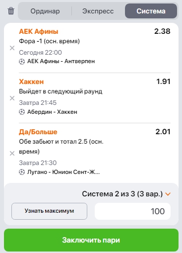 Напоминаем, что ставка типа "Система" принесёт прибыль даже в случае прохода двух позиций из трёх, а ставки вида "Экспресс" можно сделать в нашем виртуальном букмекере, доступном всем зарегистрированным пользователям. Больше статей о ставках, прогнозах, анонсах туров ТОП-чемпионатов и многом другом из мира аналитики на нашем сайте можно найти по этой ссылке.