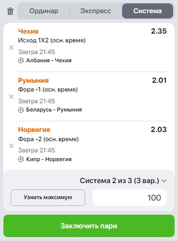 Напоминаем, что ставка типа "Система" принесёт прибыль даже в случае прохода двух позиций из трёх, а ставки вида "Экспресс" можно сделать в нашем виртуальном букмекере, доступном всем зарегистрированным пользователям. Больше статей о ставках, прогнозах, анонсах туров ТОП-чемпионатов и многом другом из мира аналитики на нашем сайте можно найти по этой ссылке.