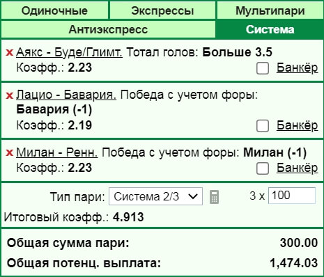 Напоминаем, что ставка типа "Система" принесёт прибыль даже в случае прохода двух позиций из трёх, а ставки вида "Экспресс" можно сделать в нашем виртуальном букмекере, доступном всем зарегистрированным пользователям. Больше статей о ставках, прогнозах, анонсах туров ТОП-чемпионатов и многом другом из мира аналитики на нашем сайте можно найти по этой ссылке.
