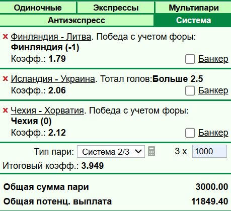 Напоминаем, что ставка типа "Система" принесёт прибыль даже в случае прохода двух позиций из трёх, а ставки вида "Экспресс" можно сделать в нашем виртуальном букмекере, доступном всем зарегистрированным пользователям. Больше статей о ставках, прогнозах, анонсах туров ТОП-чемпионатов и многом другом из мира аналитики на нашем сайте можно найти по этой ссылке.