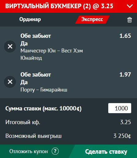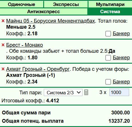 Напоминаем, что ставка типа "Система" принесёт прибыль даже в случае прохода двух позиций из трёх, а ставки вида "Экспресс" можно сделать в нашем виртуальном букмекере, доступном всем зарегистрированным пользователям. Больше статей о ставках, прогнозах, анонсах туров ТОП-чемпионатов и многом другом из мира аналитики на нашем сайте можно найти по этой ссылке.