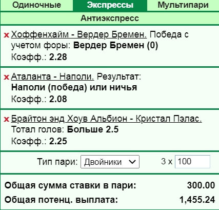 Напоминаем, что ставка типа "Система" принесёт прибыль даже в случае прохода двух позиций из трёх, а ставки типа "Экспресс" можно сделать в нашем виртуальном букмекере, доступном всем зарегистрированным пользователям. Больше статей о ставках, прогнозах, анонсах туров ТОП-чемпионатов и многом другом из мира аналитики на нашем сайте можно найти по этой ссылке.
